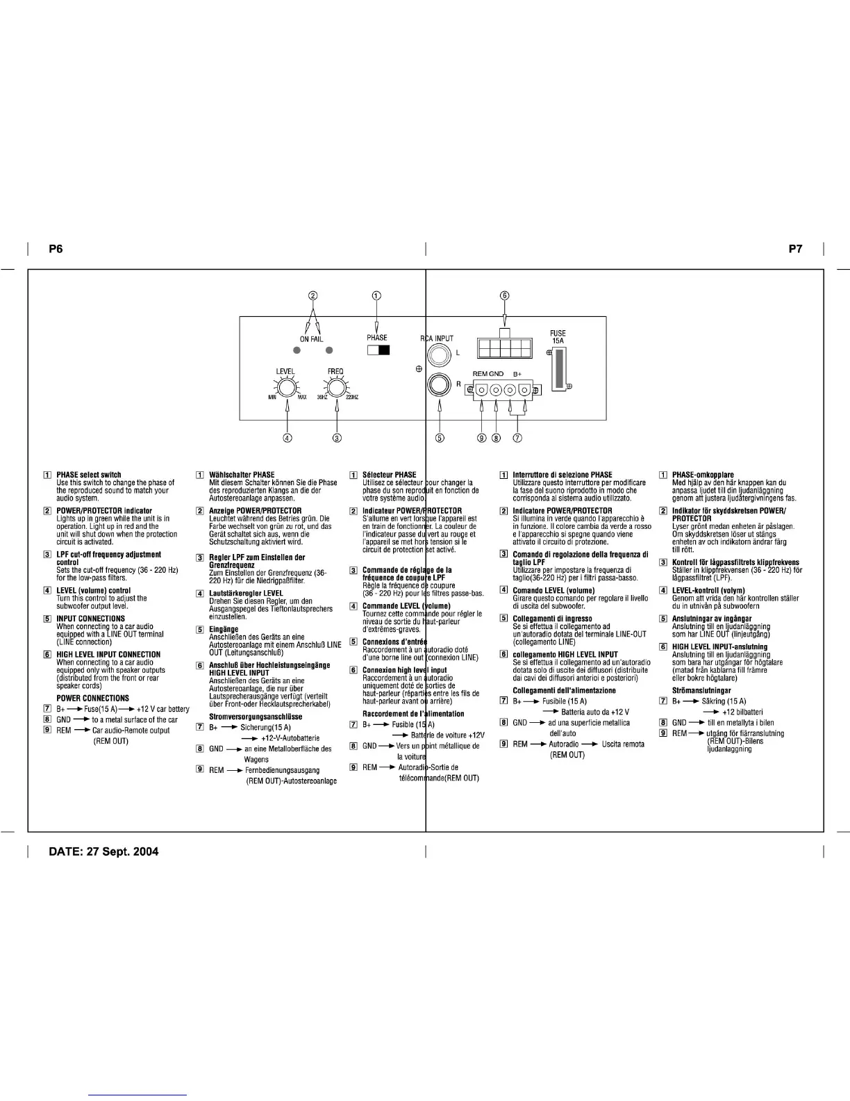 Jensen JXA8BA2 - Power Connections; B+ Fuse (+12 V Car Battery); GND (Metal Surface); REM (Remote Output)