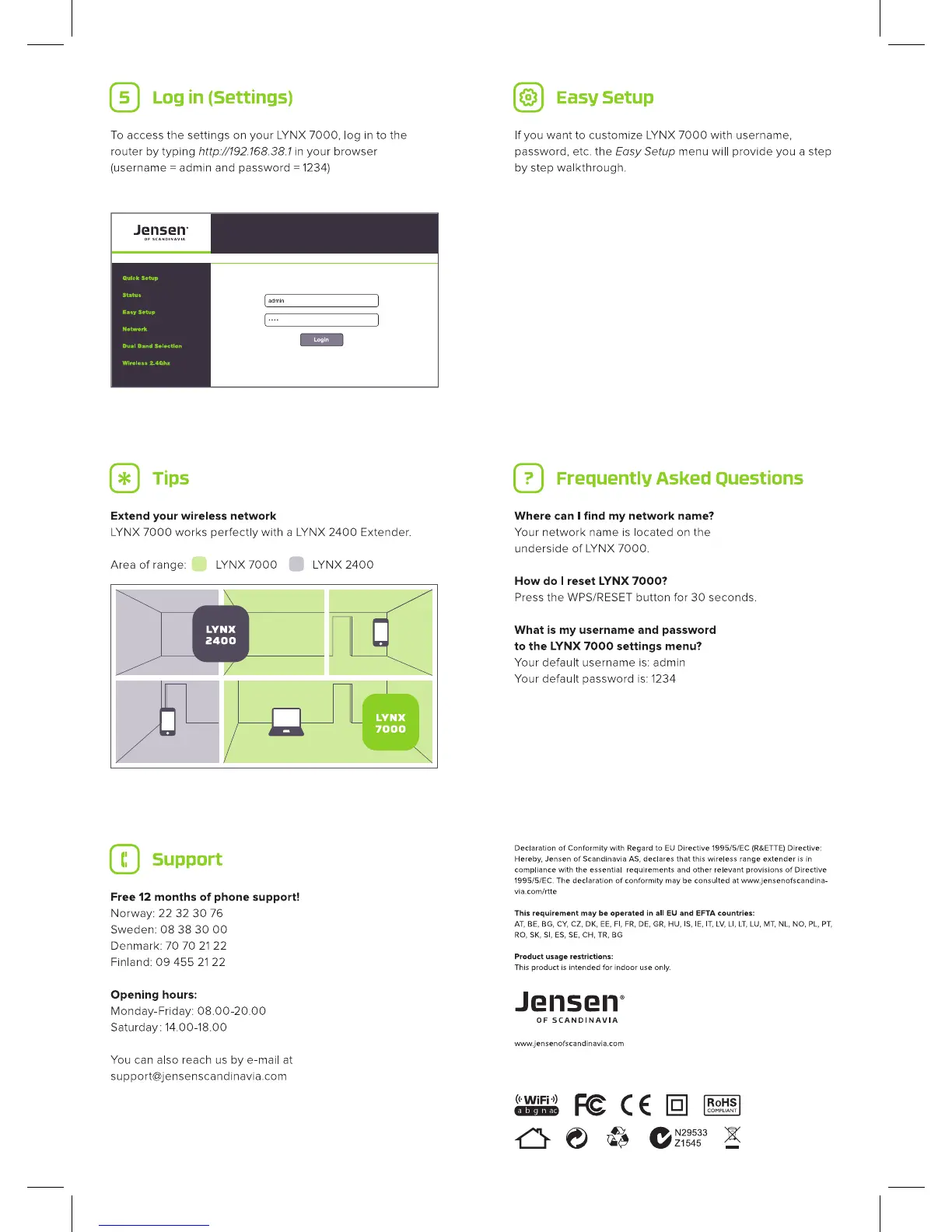 Jensen LYNX 7000 - Log In and Access Settings; Access Router Settings; Easy Setup Guide; Customize Router Configuration