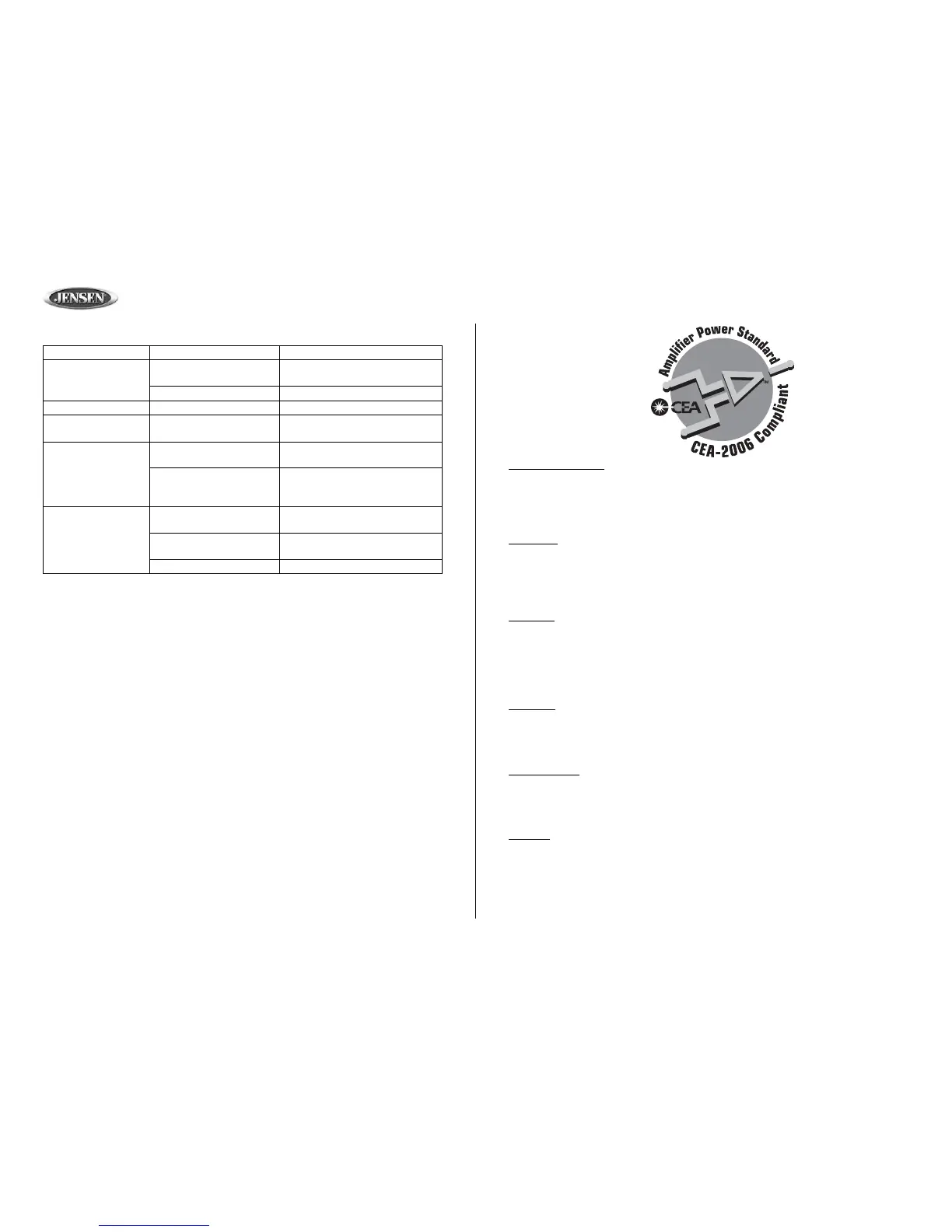 Power Output . . . . . . . . . . . . . . . .18 watts RMS X 4 channels into 4-ohms @ < 1% THD+N