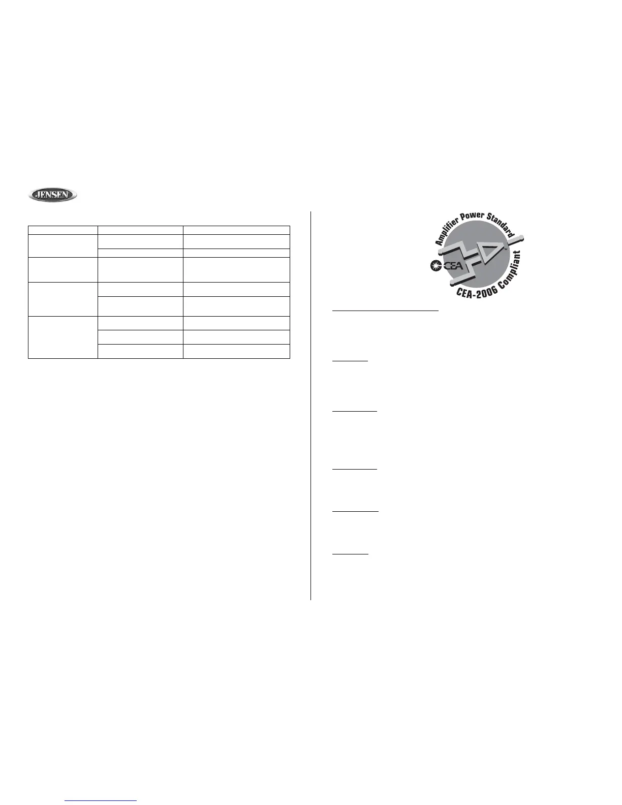 Rendement de puissance . . . . . . . . . . 18 watts RMS X 4 canaux a 4-ohms @ < 1% THD+N
