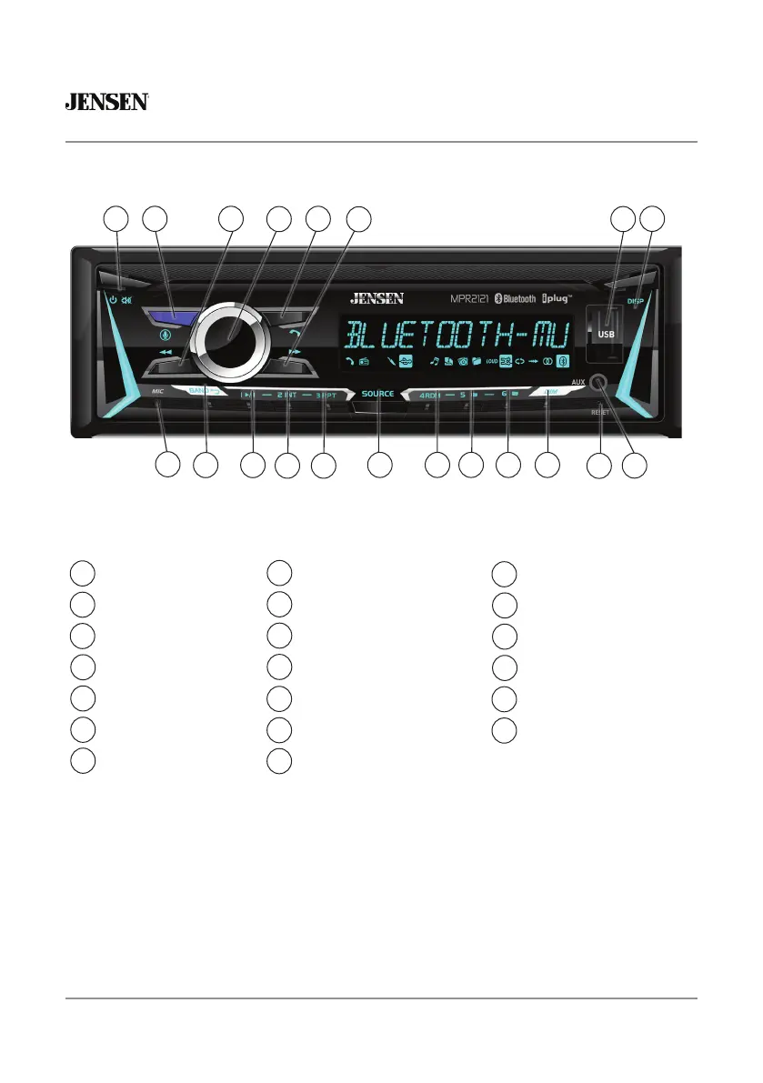 Jensen MPR2121 - Control Panel Overview; Front Panel Controls