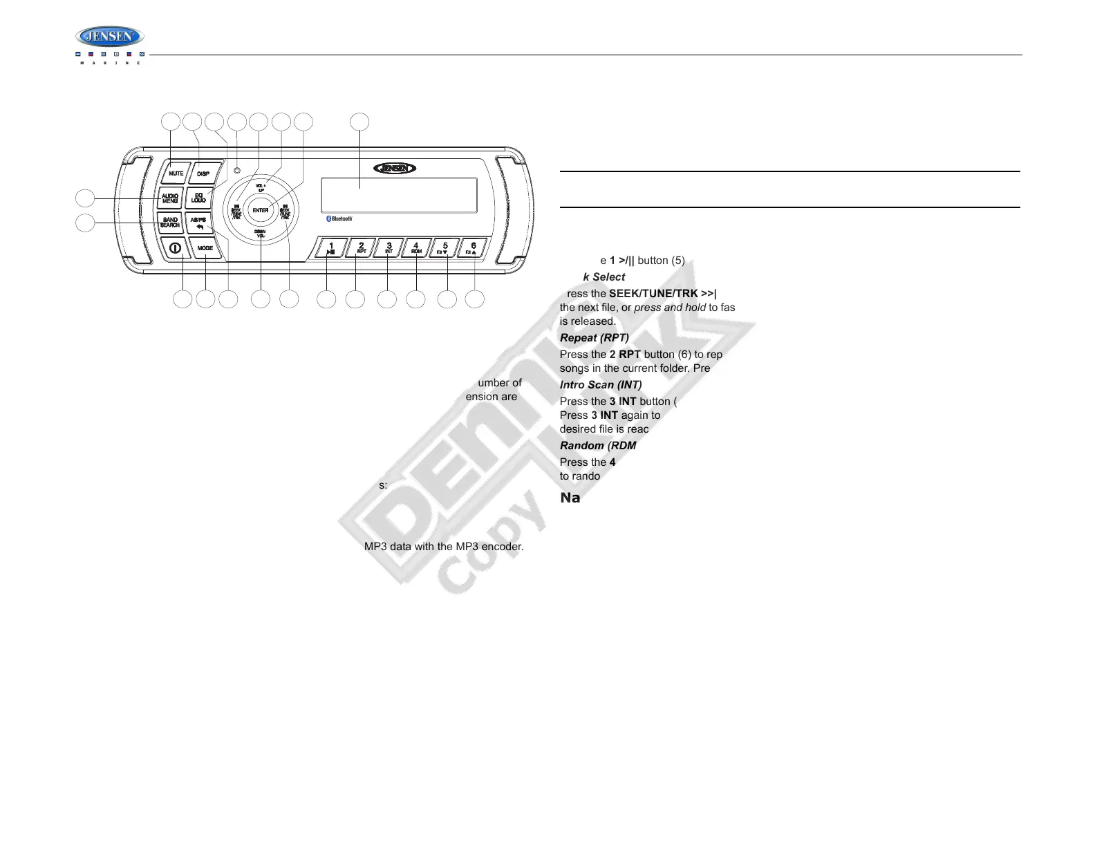 Press the 4 RDM button (8) to randomly play all files in the current folder. Press 4 RDM again