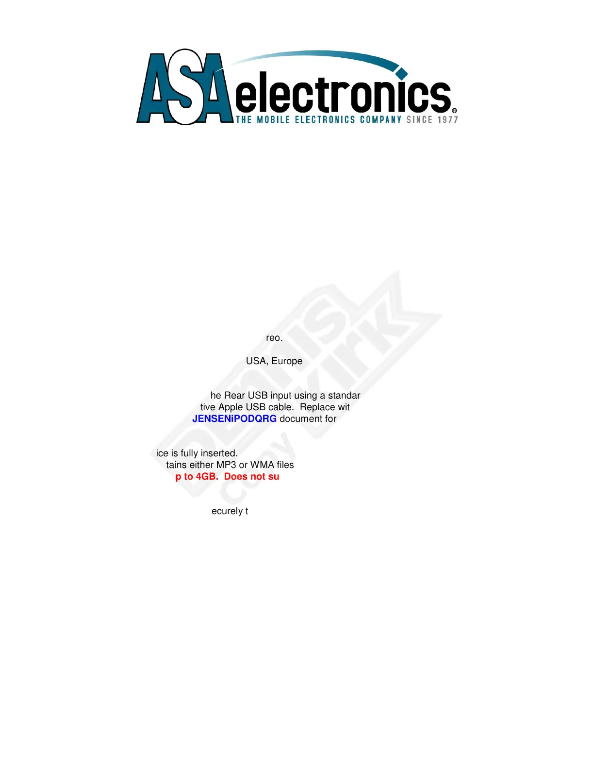 Incompatible iPod. Refer to JENSENiPODQRG document for iPod compatibility list.