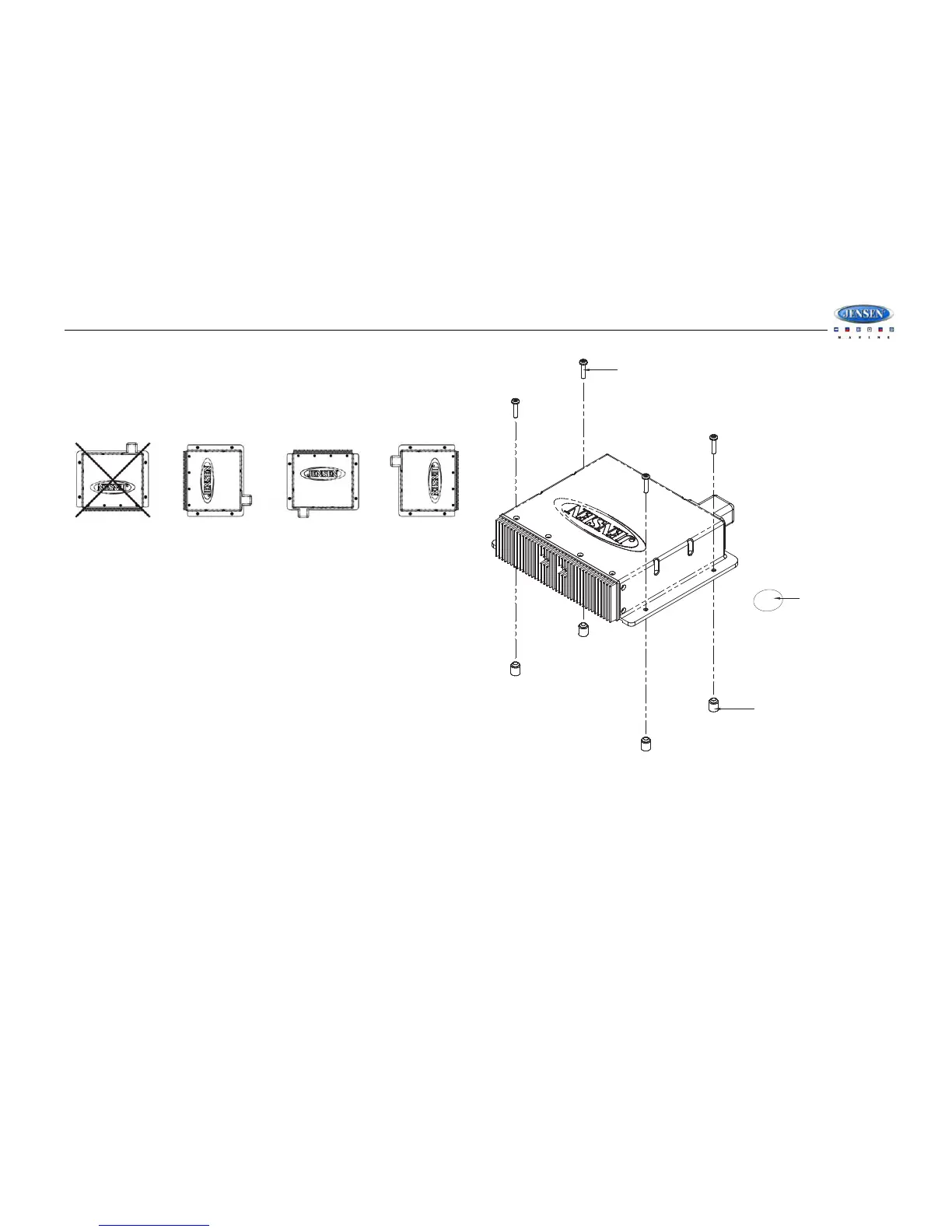 2. Attachez les 4 pied de montage en caoutchouc, en bas de la dalle métallique du tuner/