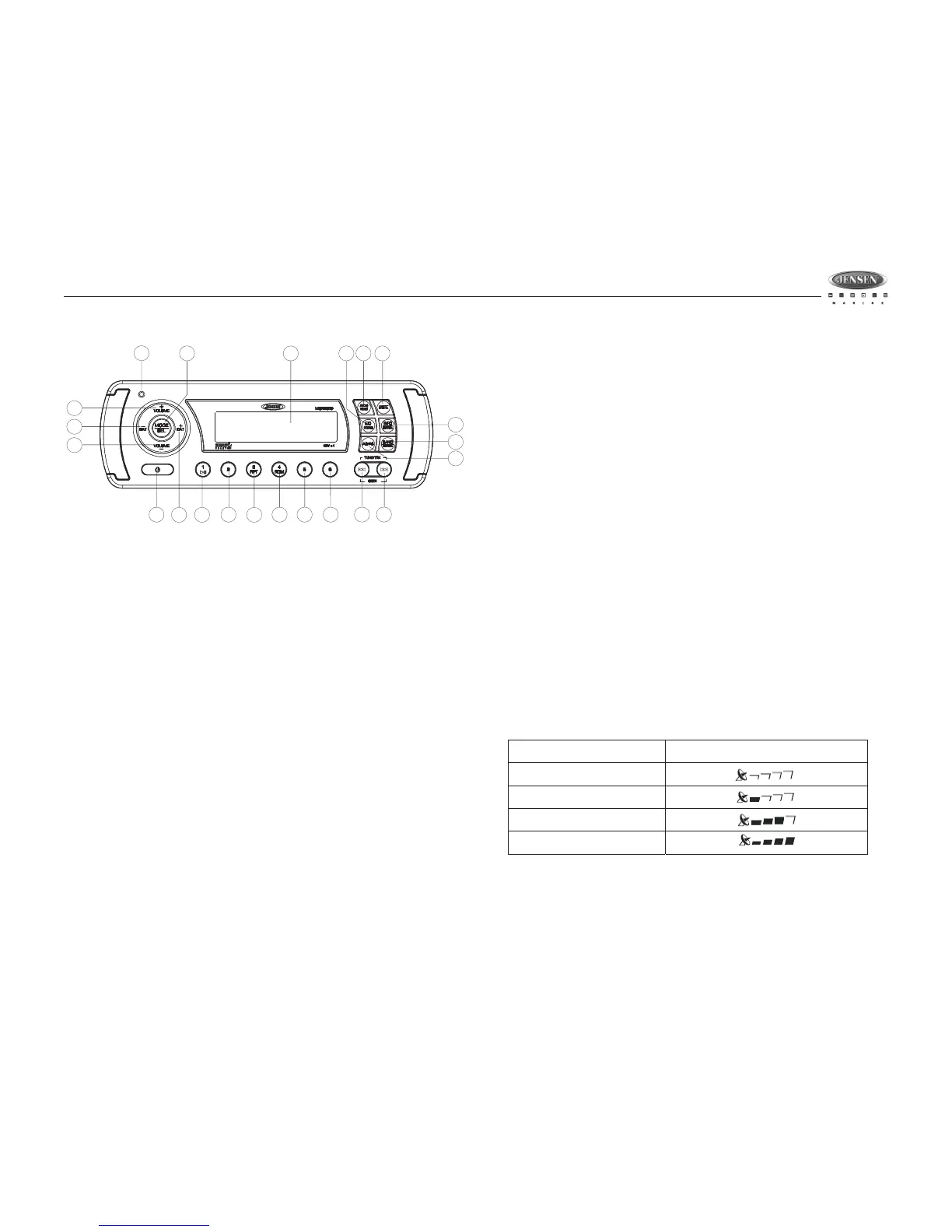 Les boutons de pré-réglage (5-10) peuvent être utilisés pour mettre en mémoire 6 chaînes