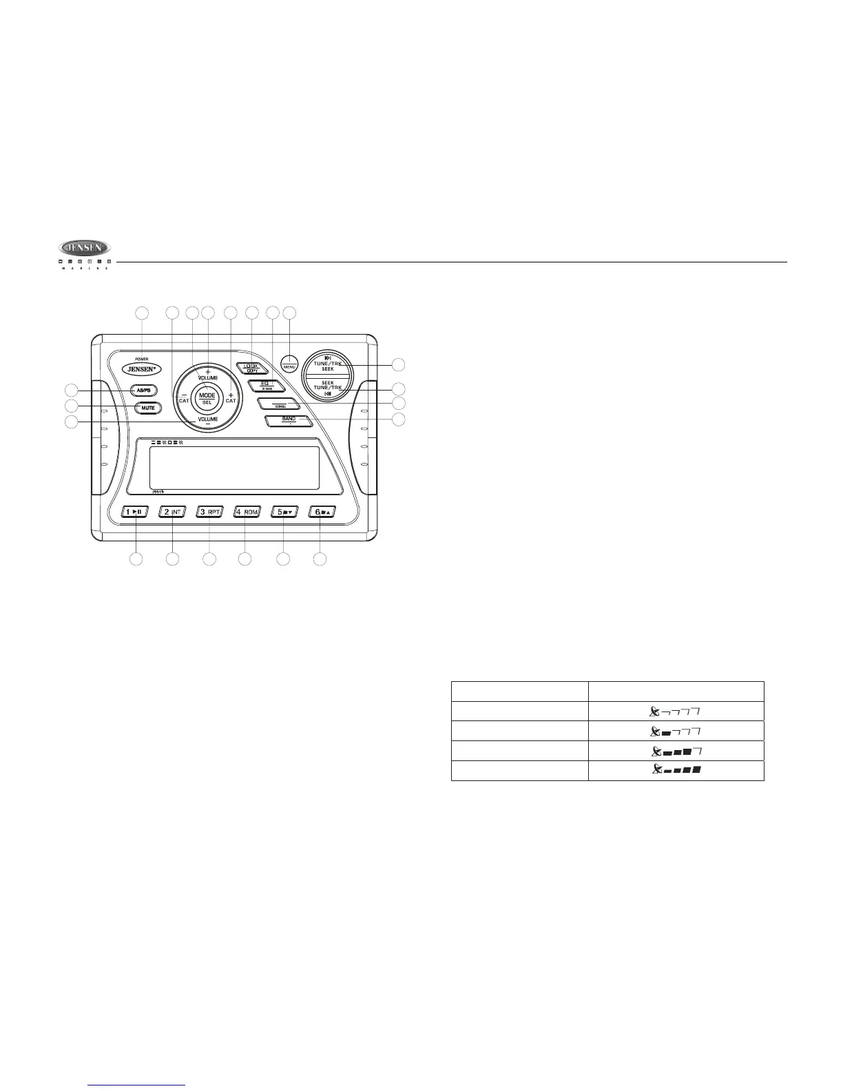 The display will indicate satellite reception strength as shown below.