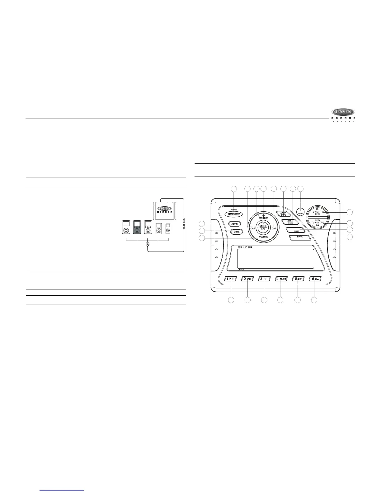 Press and hold the TUNE/TRK |<< / >>| button (18/19) to fast reverse/forward the song.