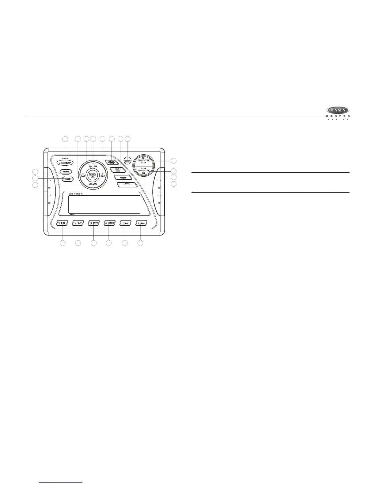 Seis botones numerados almacenan y sintonizan estaciones preseleccionadas por cada