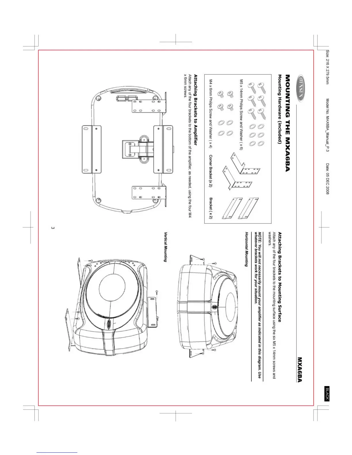 Jensen MXA6BA - Mounting the Jensen MAX6 BA Subwoofer; Mounting Hardware Included; Attaching Brackets to Amplifier; Attaching Brackets to Mounting Surface