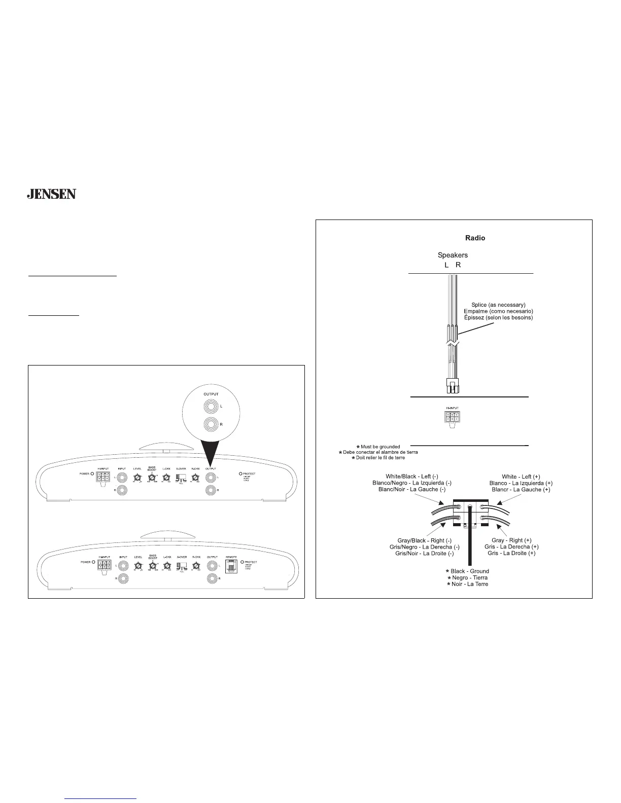 Note: Only connect the low (RCA) or high level input, not both at the same time.