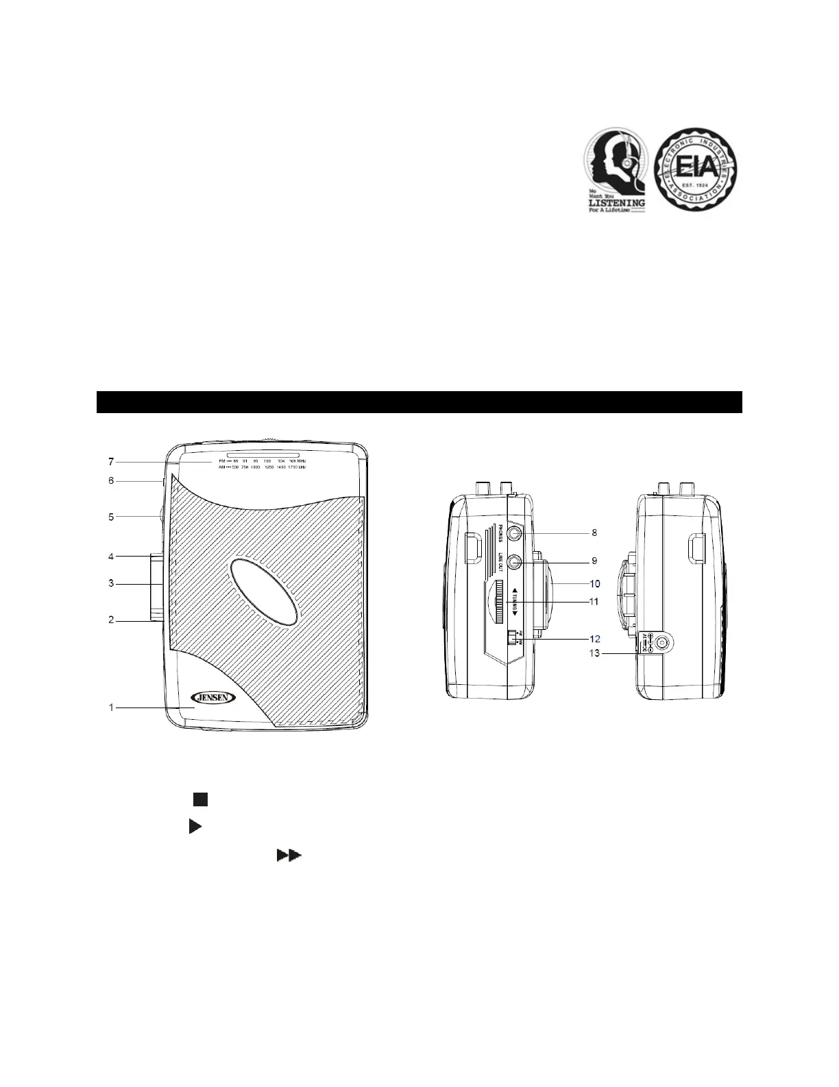 1 CASSETTE DOOR 8 STEREO HEADPHONE JACK