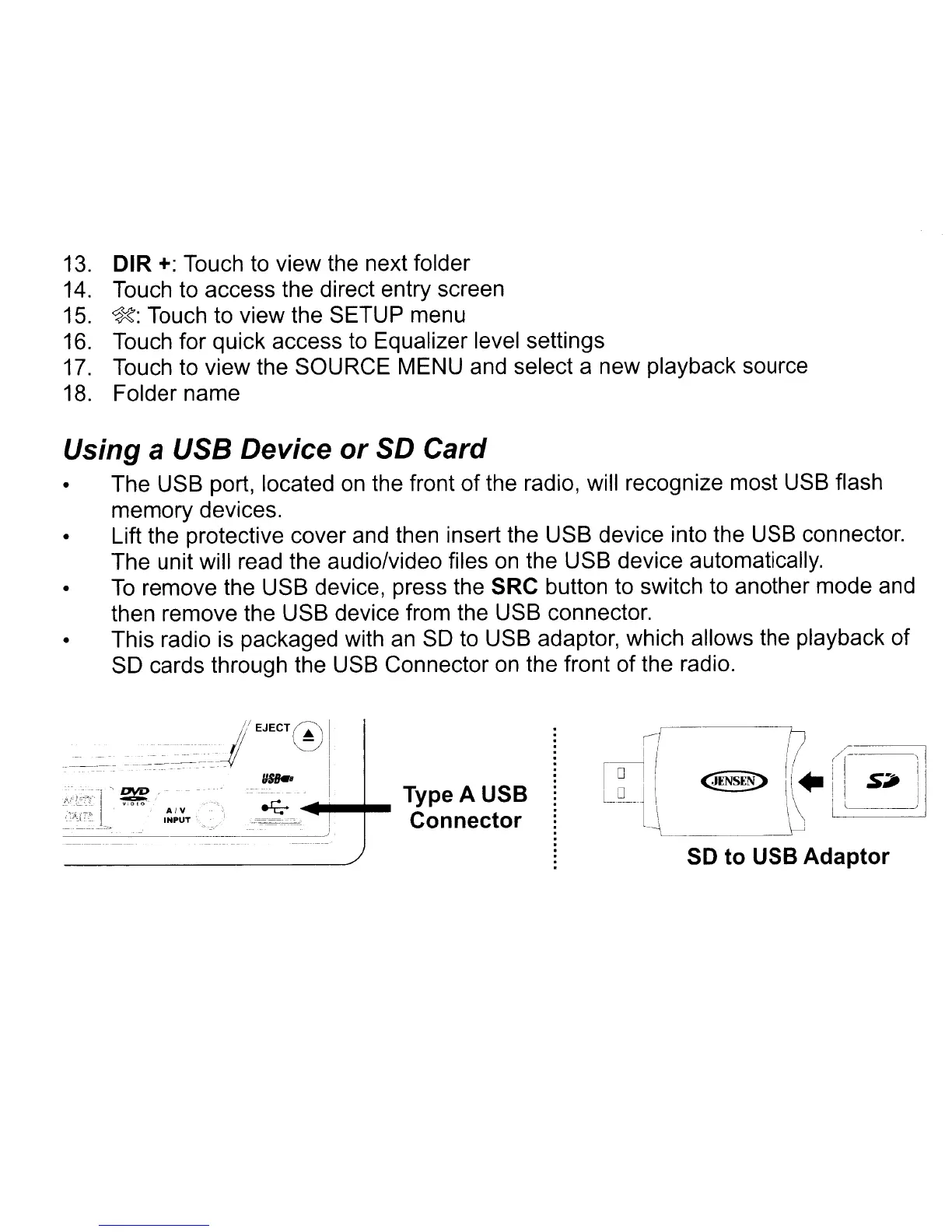remove the USB device, press the SRC button to switch to another mode and