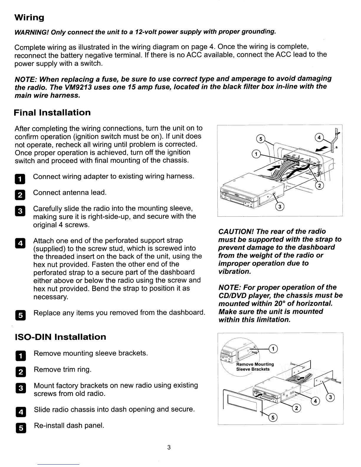 Slide radio chassis into dash opening and secure.