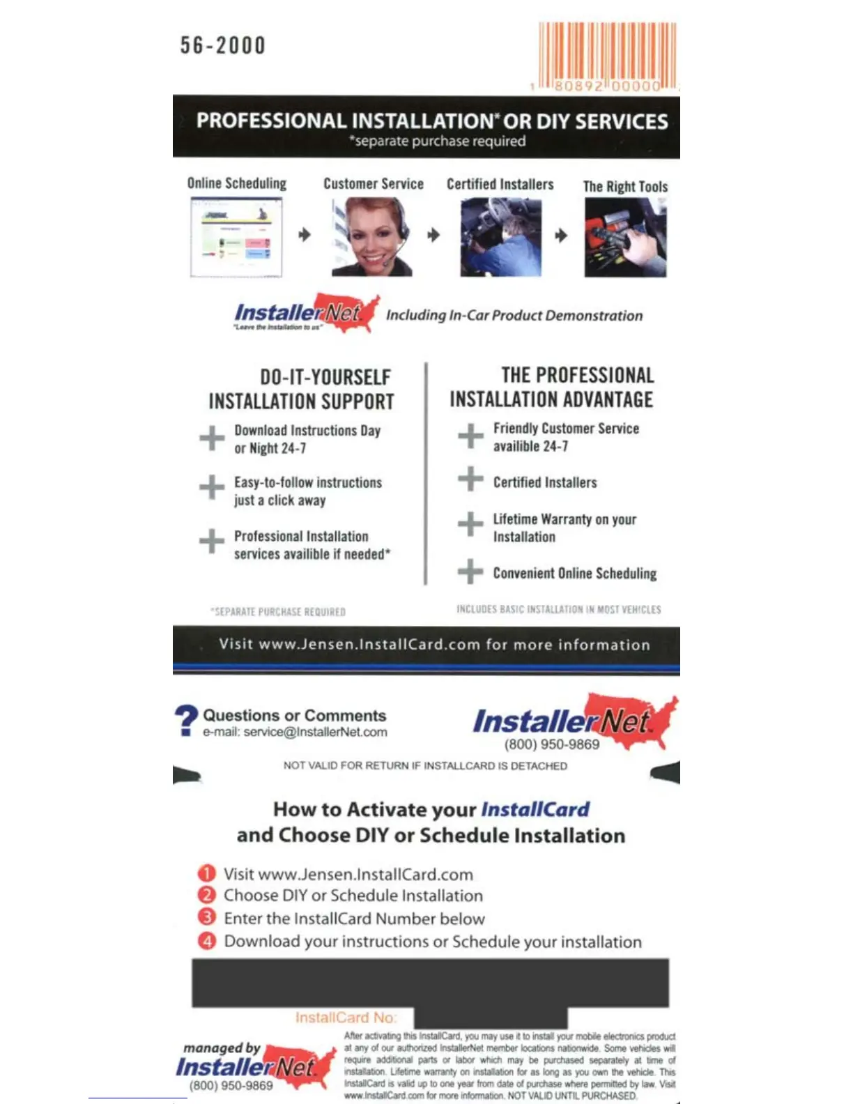 PROFESSIONAL INSTALLATION'OR DIY SERVICES