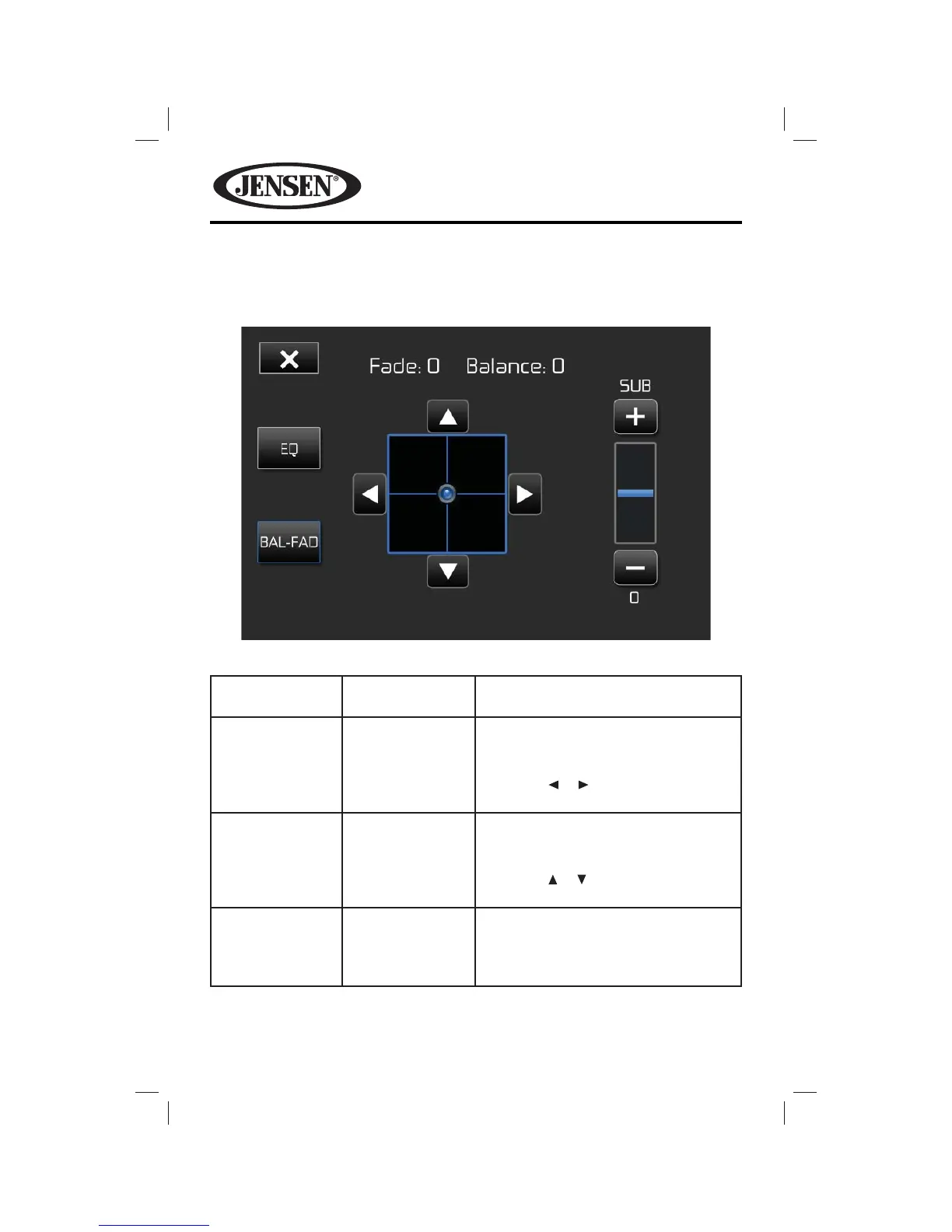 Touch the BAL-FAD button on the left side of the equalizer screen to display the