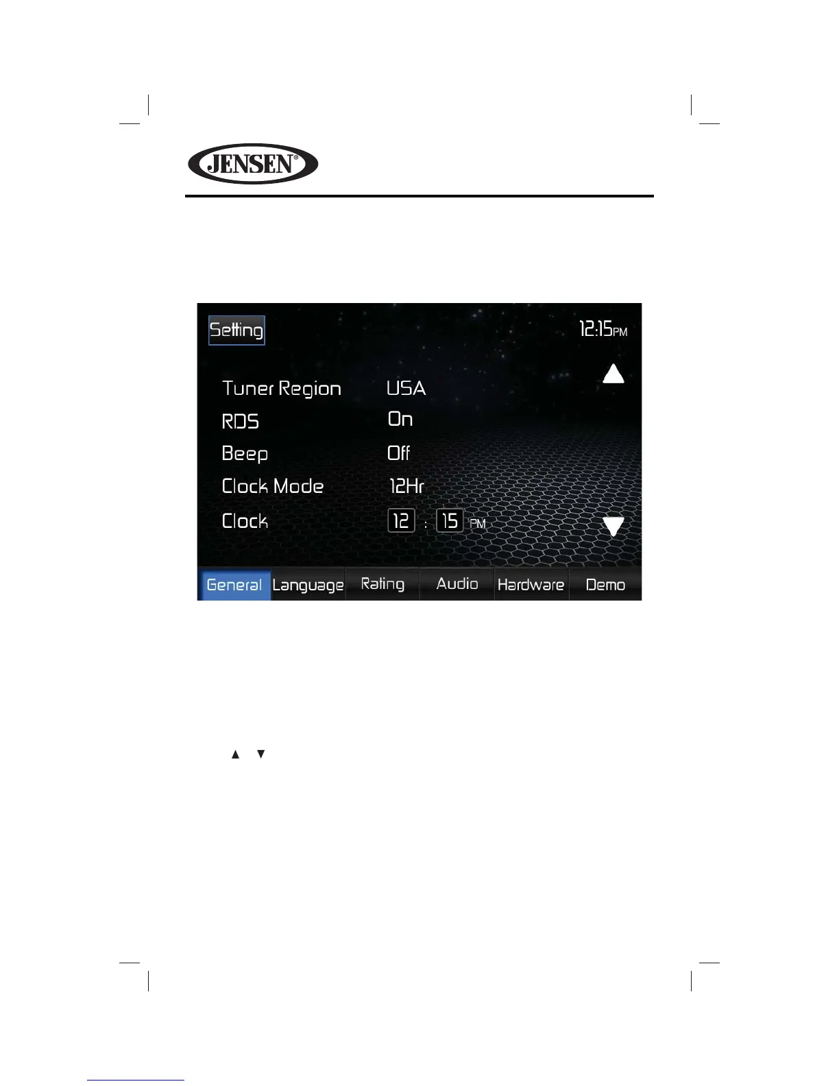 (General, Language, Rating, Audio, Hardware or Demo). The features available for