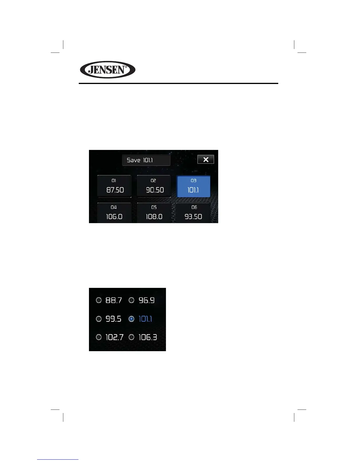 (or touch X to cancel and close the menu). The station frequency is displayed