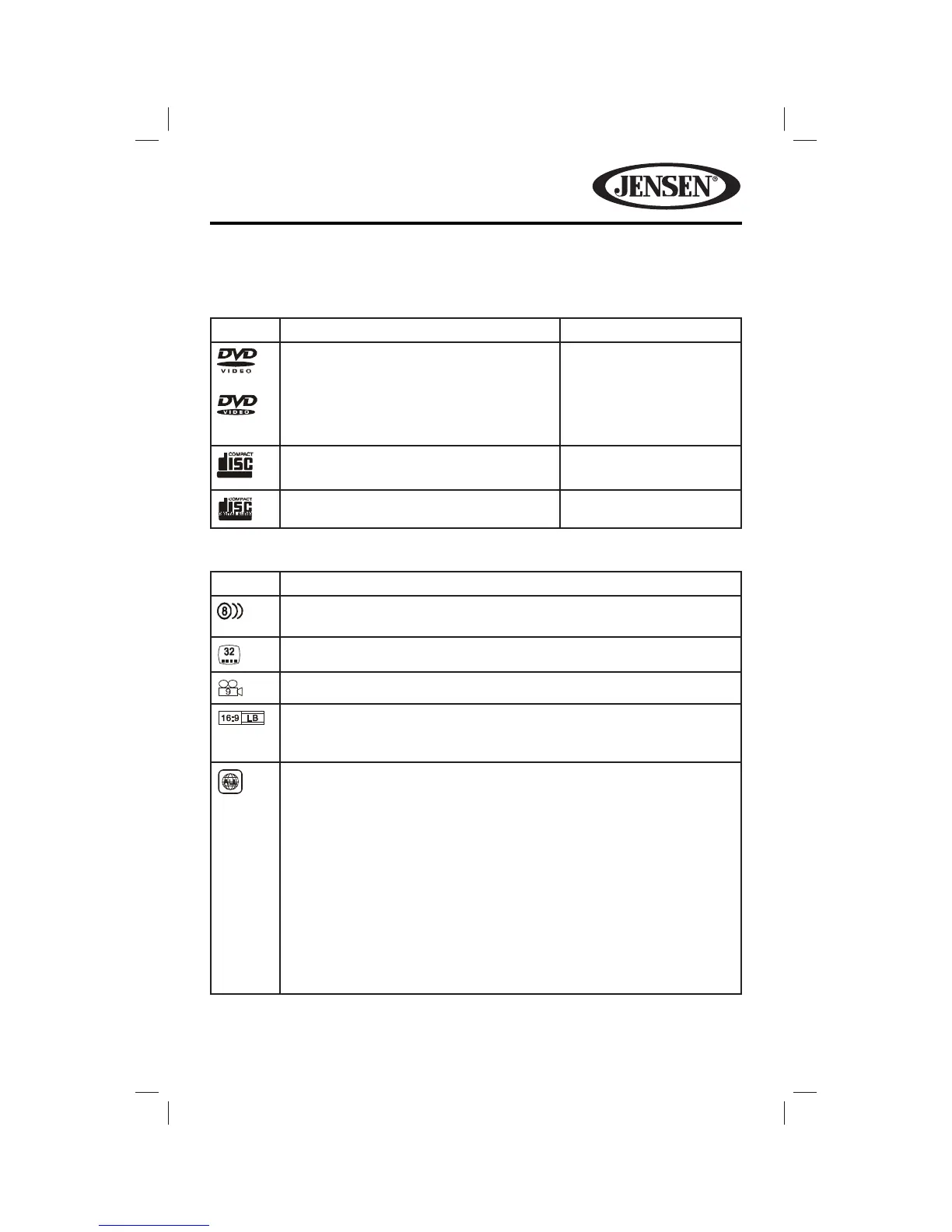 Indicates the region code where the disc can be played.