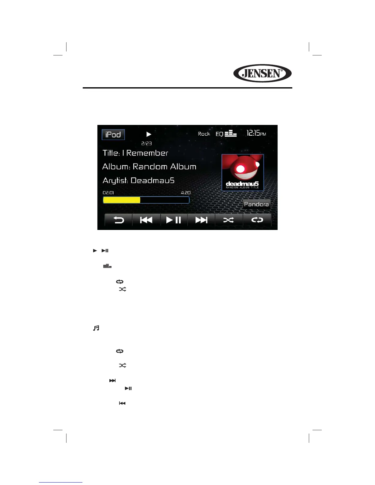 15. Random ( ) icon: Touch to alter random mode as follows: Random On >