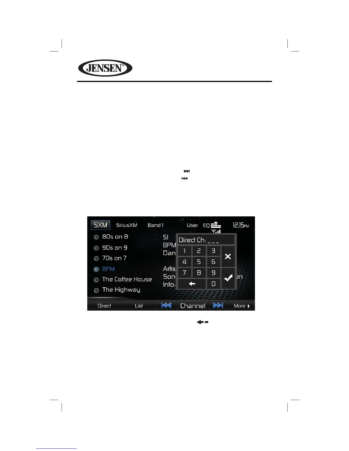 2. Enter the desired SiriusXM® radio channel using the on-screen number pad. If