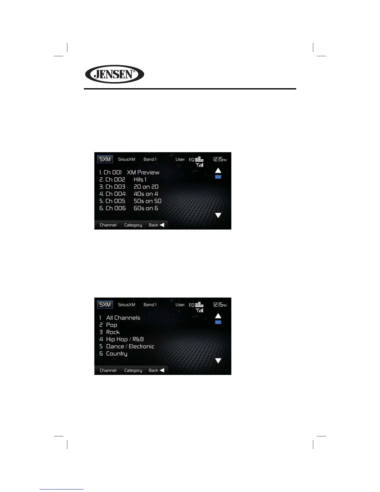 1. On the SirusXM® menu page, touch the Category/Channel icon (if needed) to