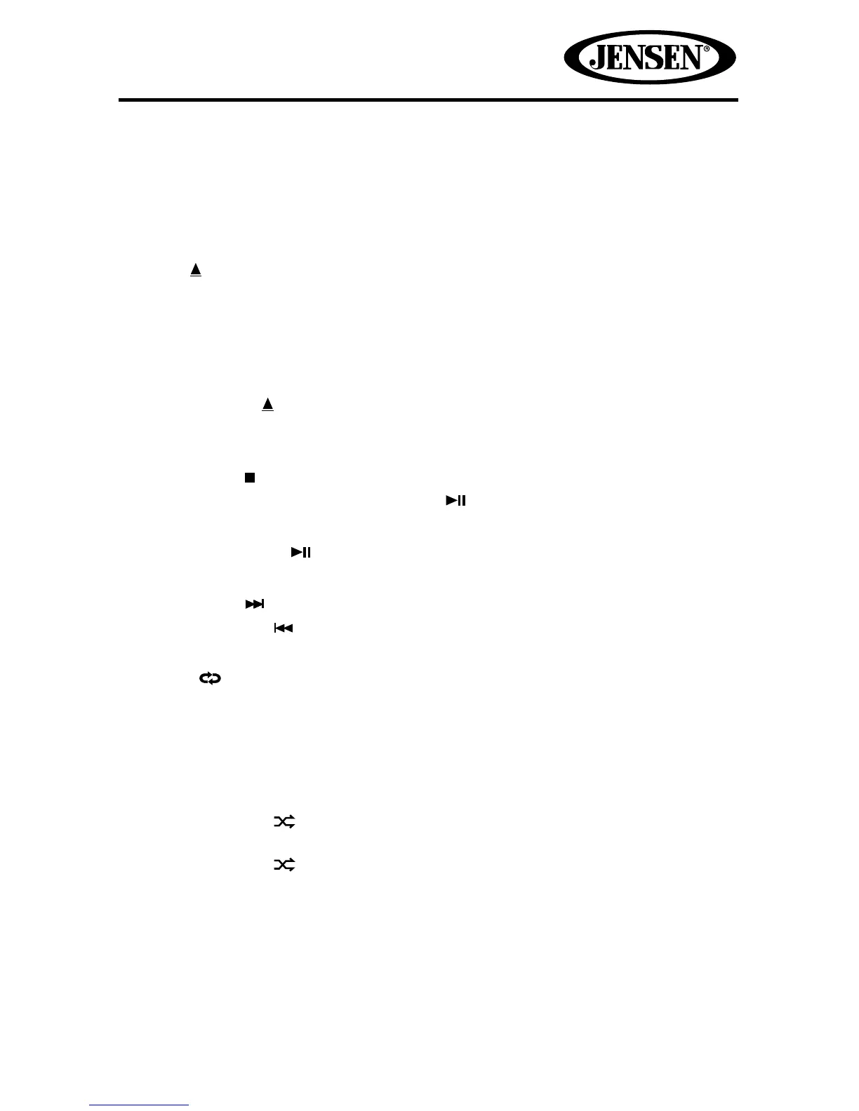NOTE: CD-R and CD-RW will not play unless the recording session is nalized.