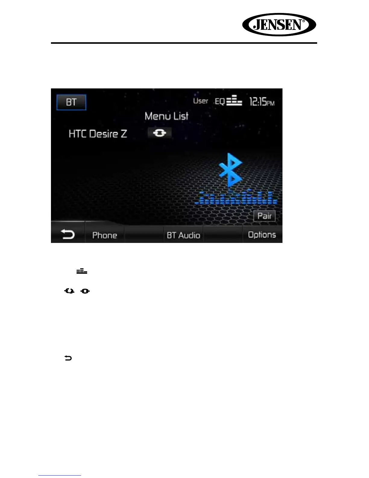 6. Pair icon: Touch to initiate the pairing process with a Bluetooth®device.