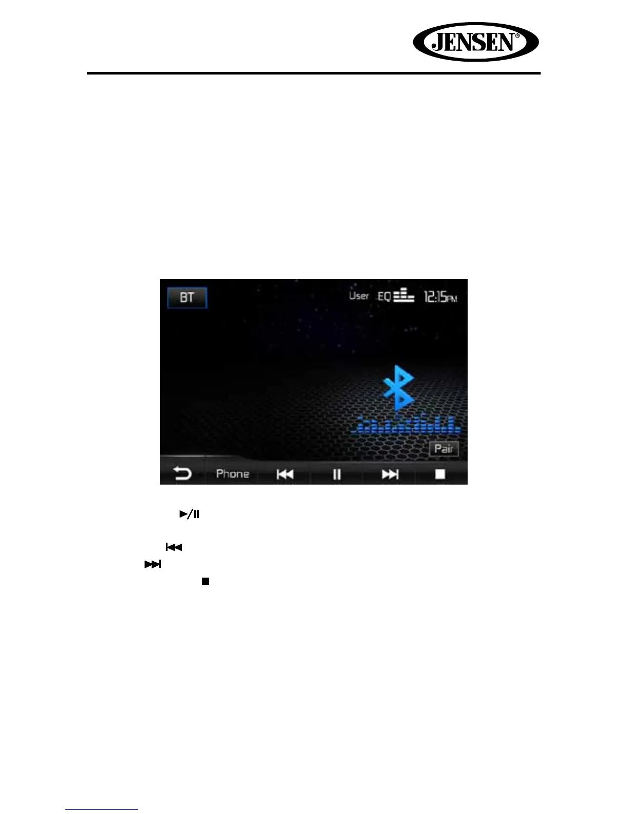 to this unit. Touch the BT Audio icon and the following screen will appear: