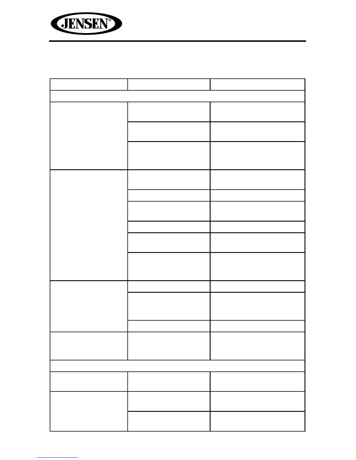 Unit will not power on Radio Fuse blown Install new fuse with correct