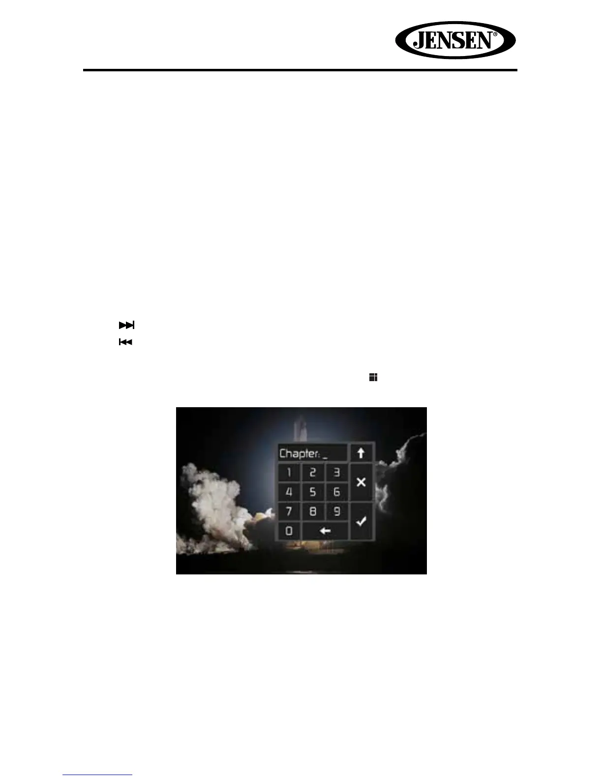 Enter the desired chapter/track using the on-screen number pad. Touch the “check