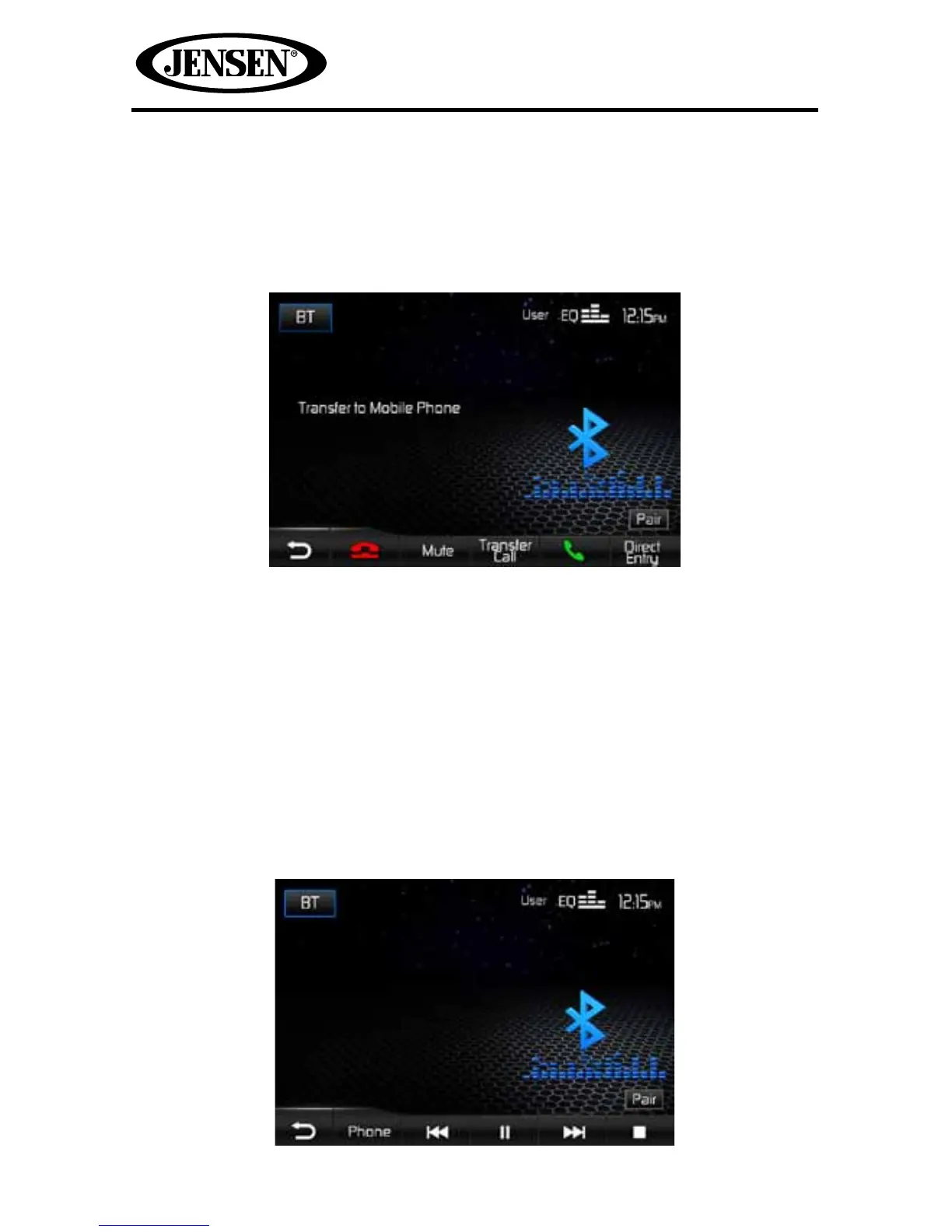 to this unit. Touch the BT Audio icon and the following screen will appear: