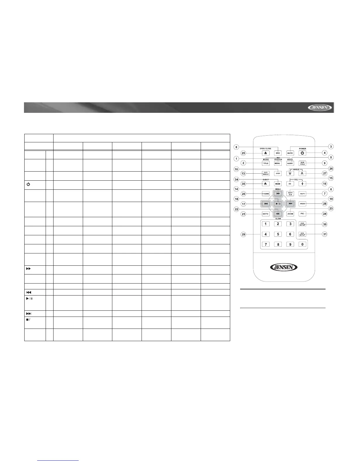 Table 1: Remote Control Functions