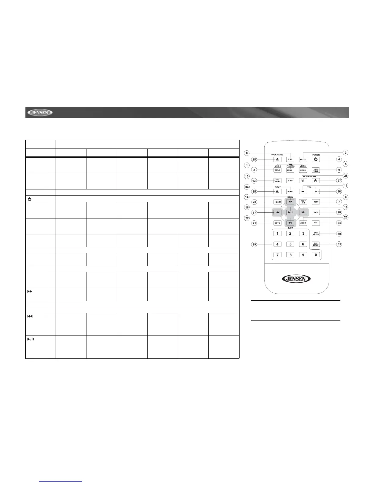 Table 1: Fonctions de télécommande