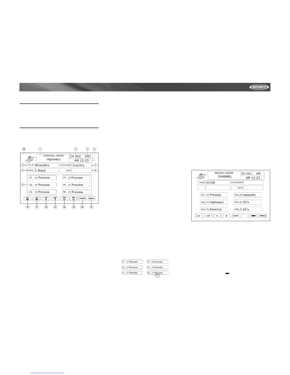 et les six premières chaînes XM sont affichées dans des