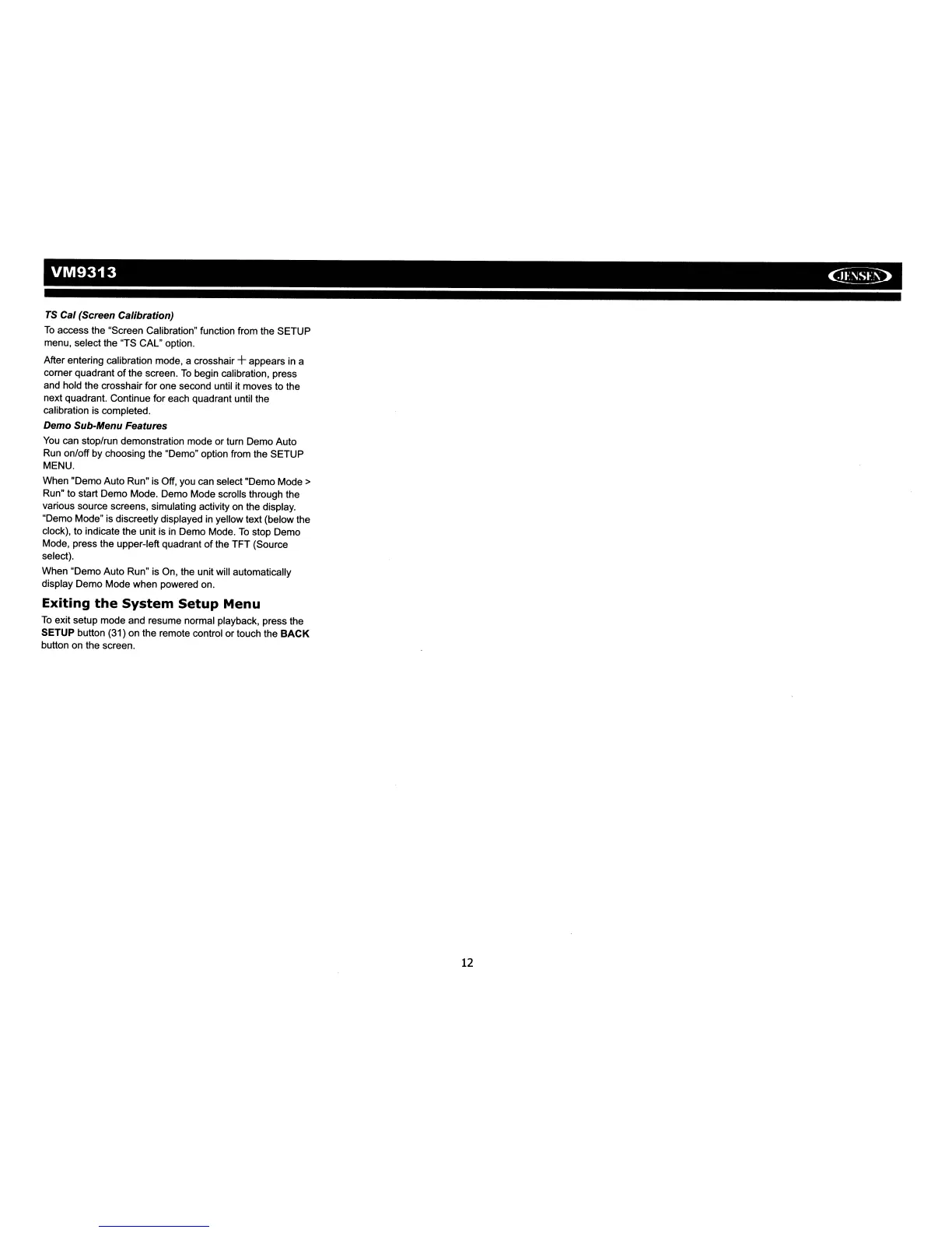 exit setup mode and resume normal playback, press the