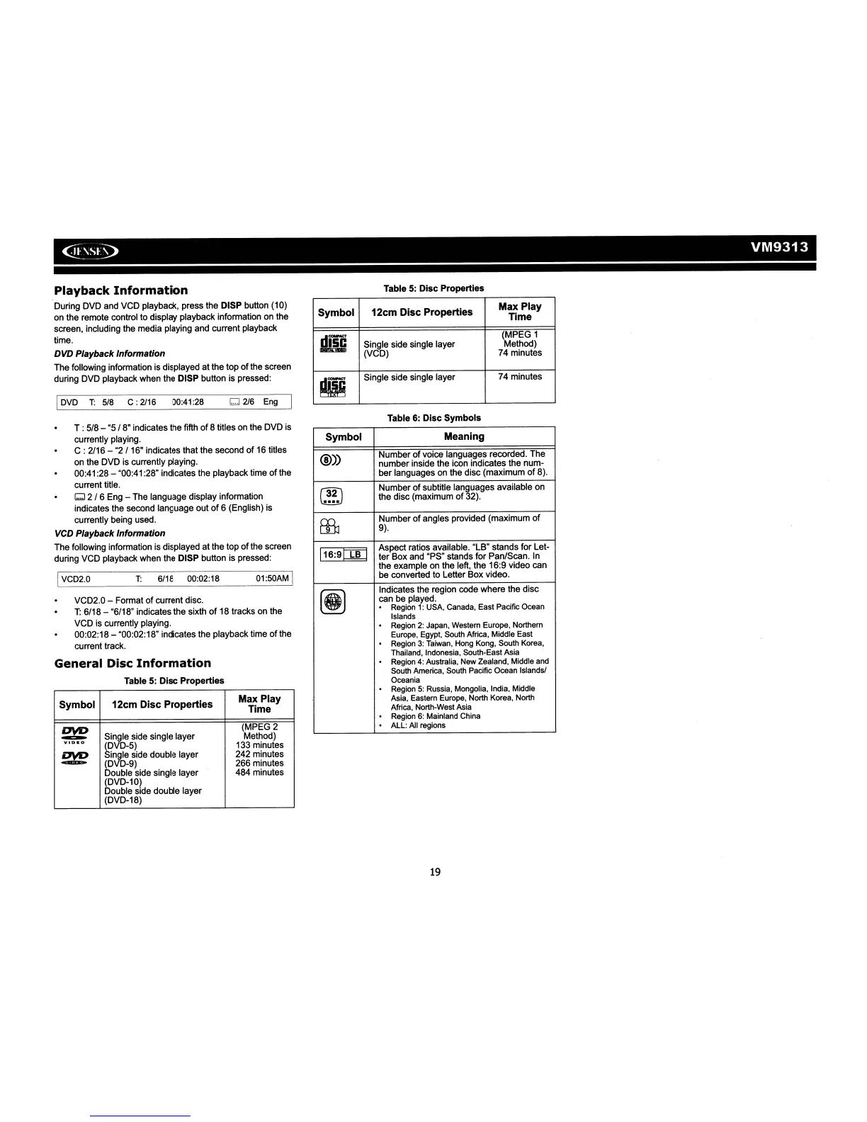 During DVD and VCD playback, press the DISP button (10)