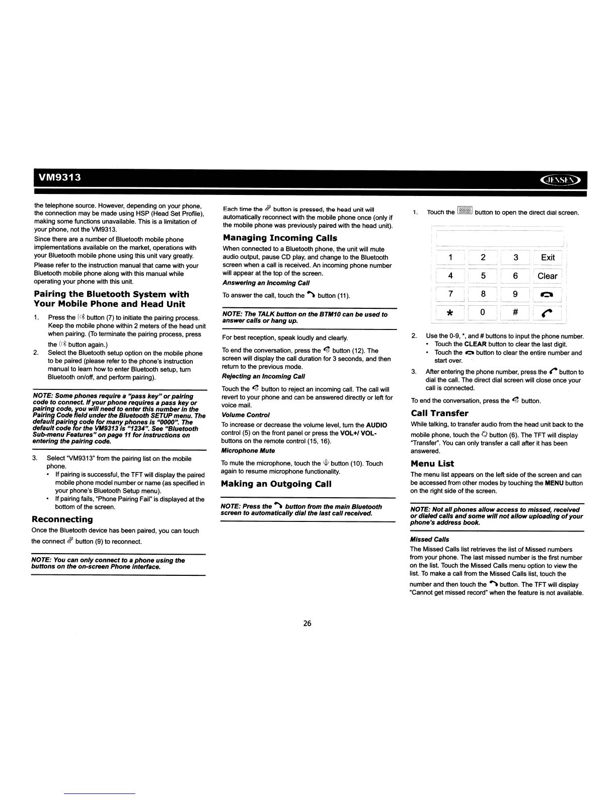 the VM9313Is "1234", See "Bluetooth