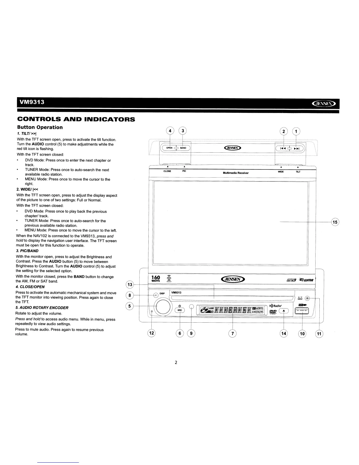 Turn the AUDIO control (5) to make adjustments while the