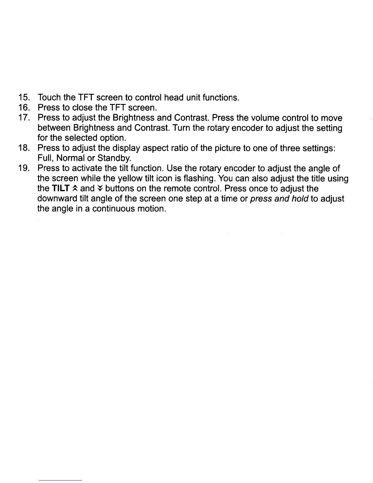 15. Touch the TFT screen to control head unit functions.
