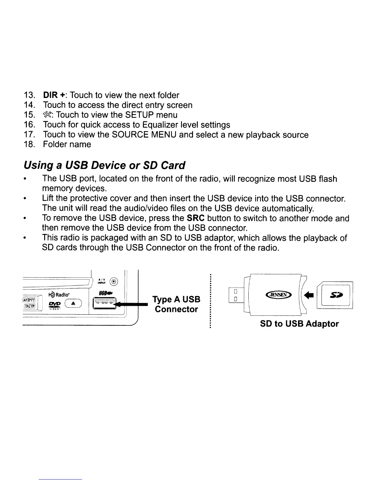 remove the USB device, press the SRC button to switch to another mode and