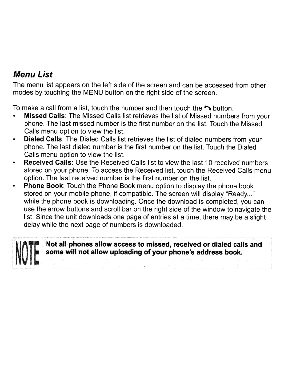 • Phone Book: Touch the Phone Book menu option to display the phone book