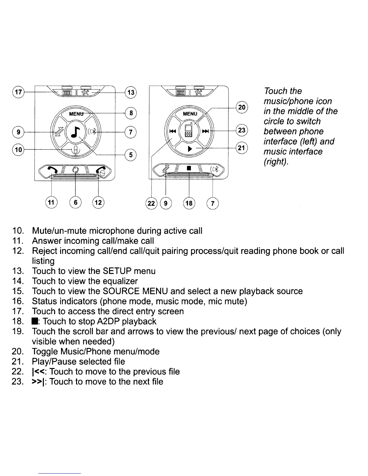 12. Reject incoming call/end call/quit pairing process/quit reading phone book or call