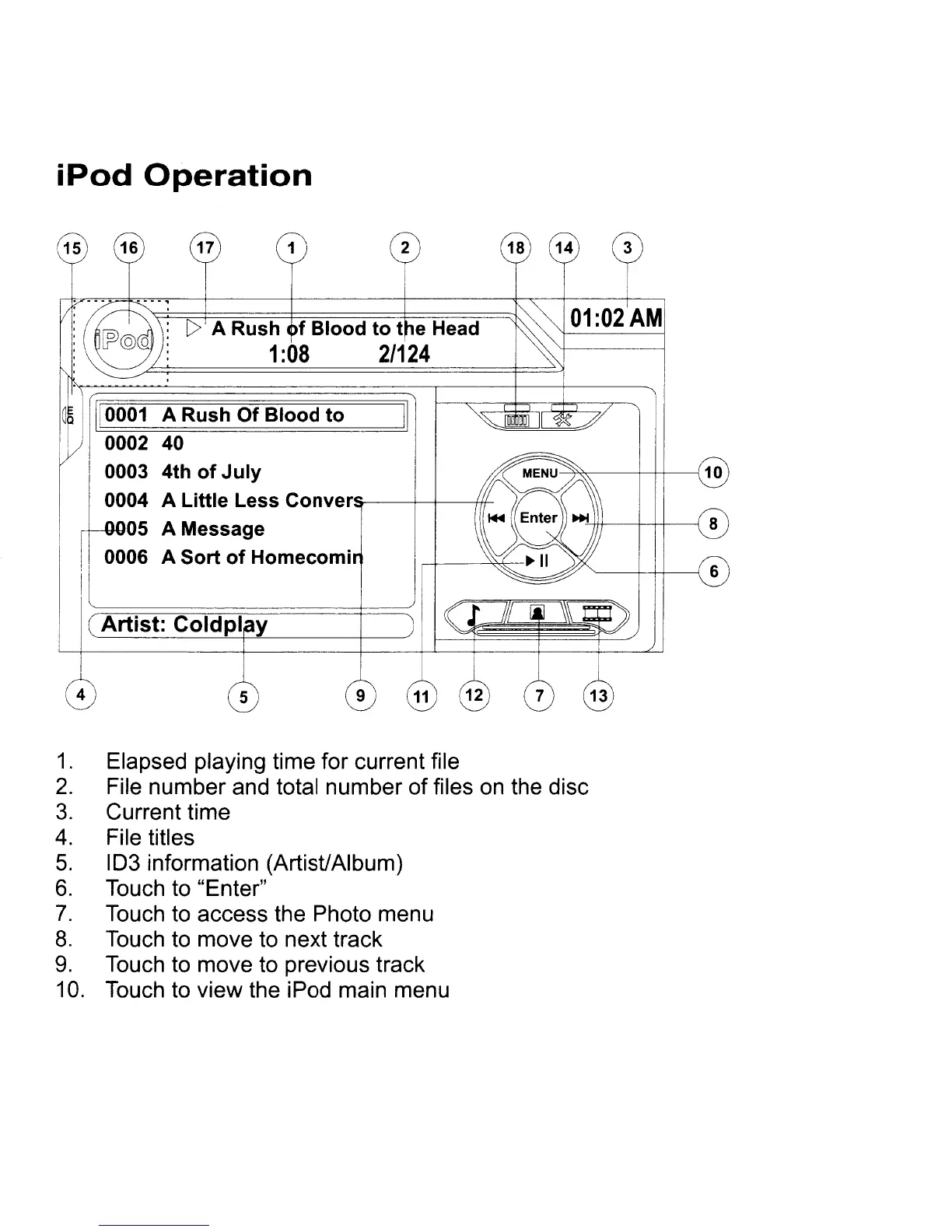 Touch to view the iPod main menu