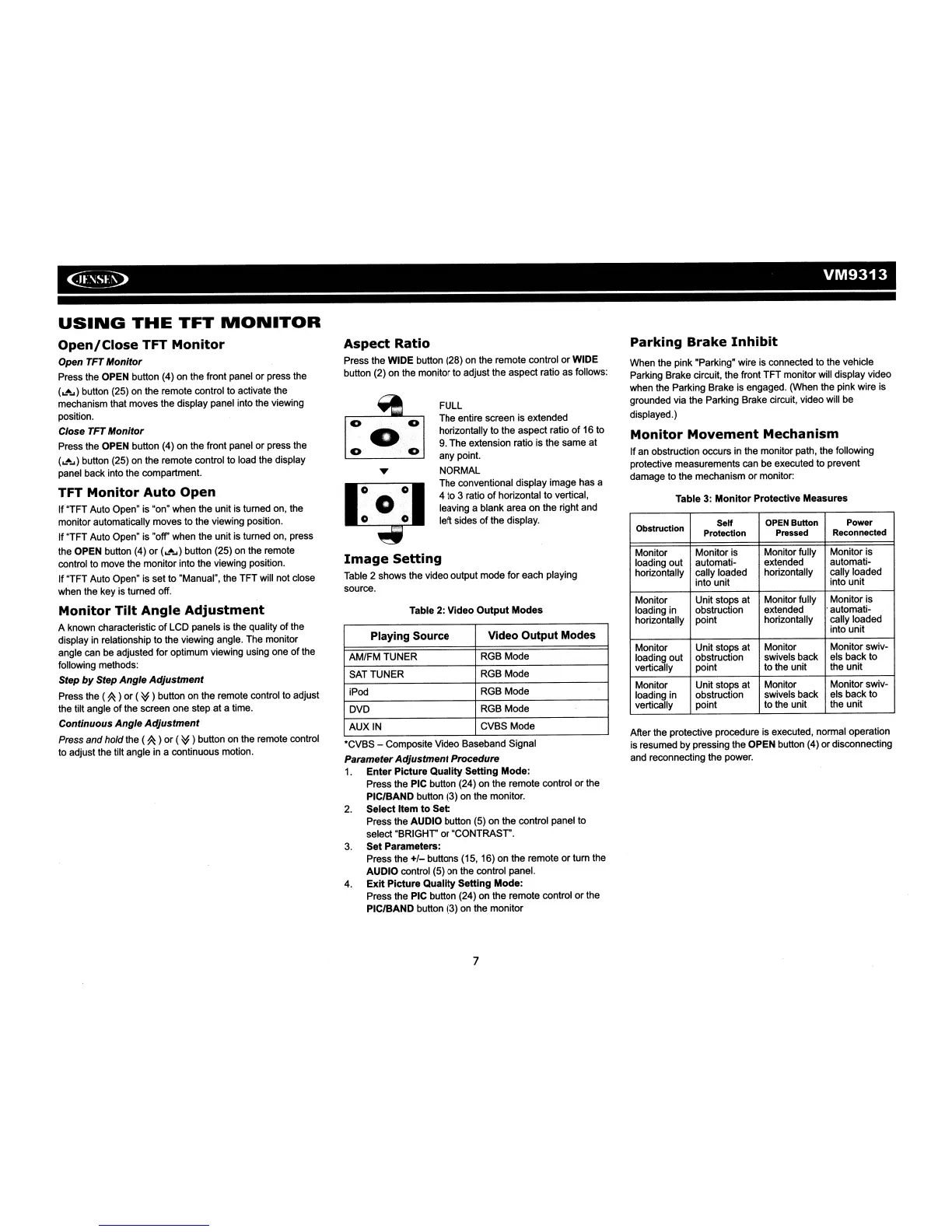 Table 2 shows the video output mode for each playing