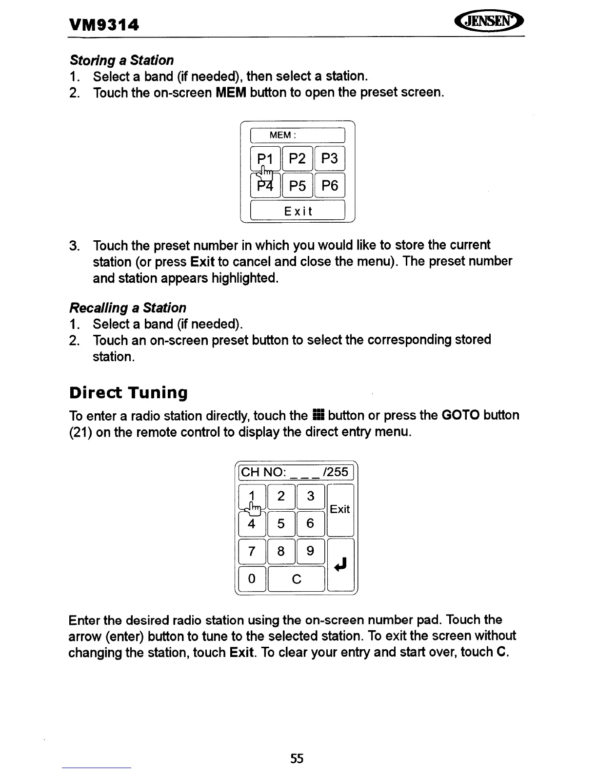 enter a radio station directly, touch the