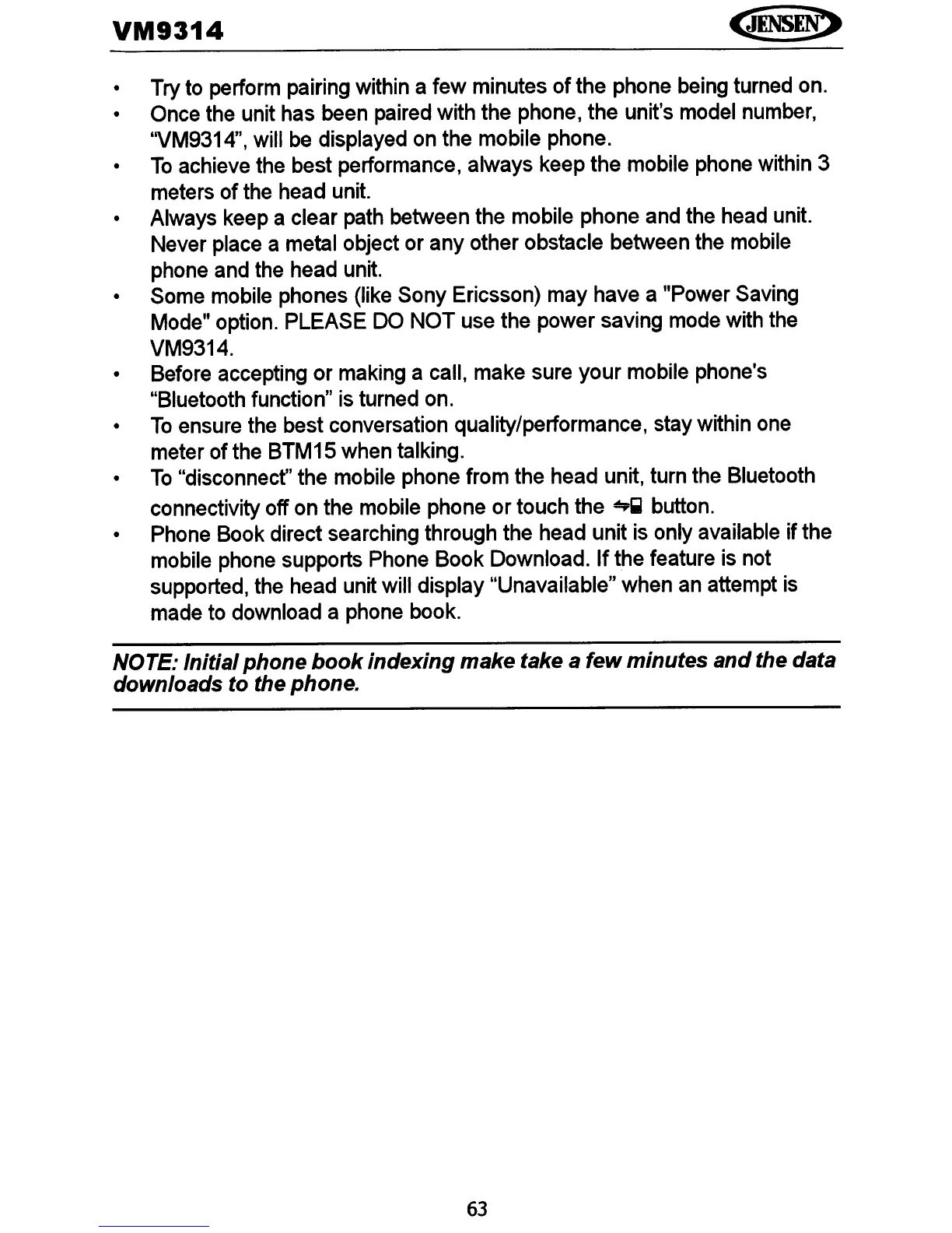 "disconnecf' the mobile phone from the head unit, turn the Bluetooth