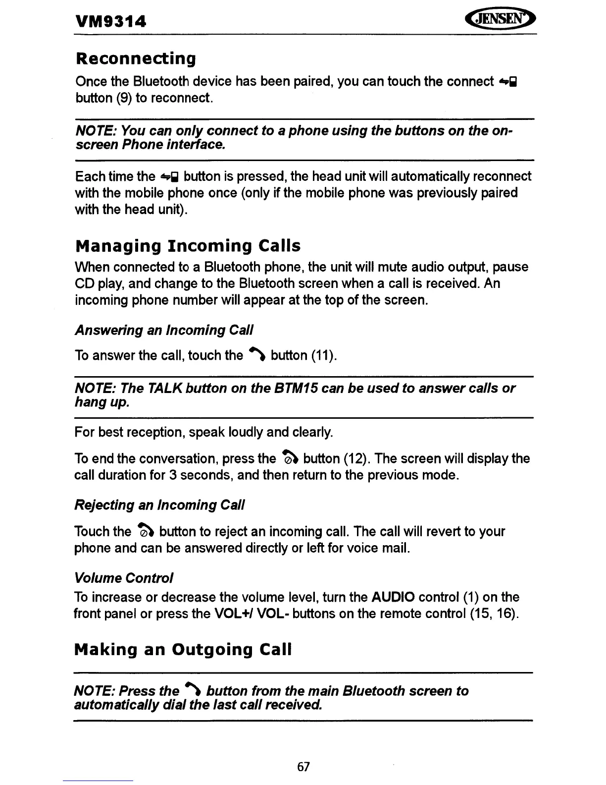 pressed, the head unit will automatically reconnect