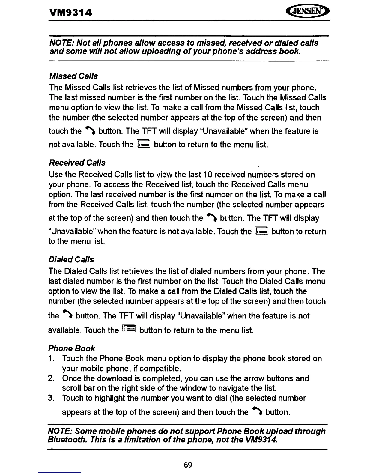 dialed numbers from your phone. The