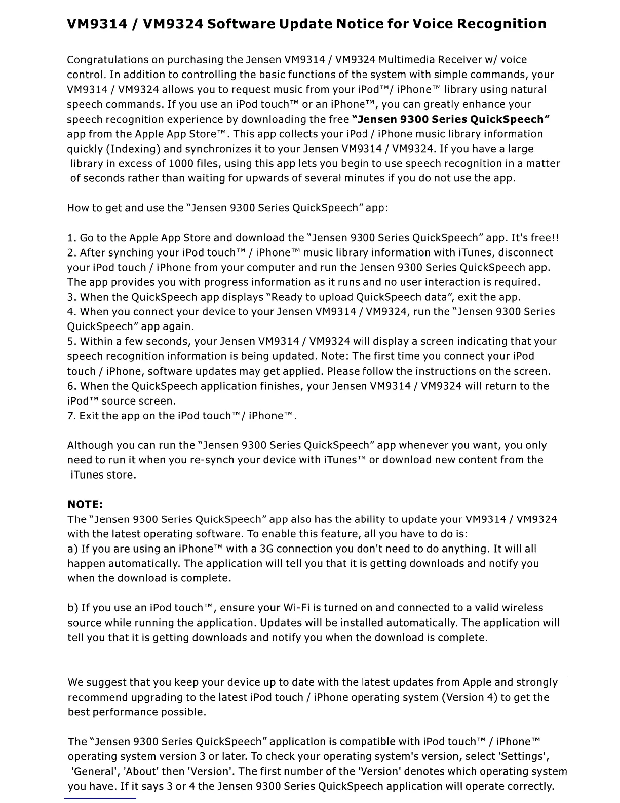 Jensen 9300 Series QuickSpeech application will operate correctly.