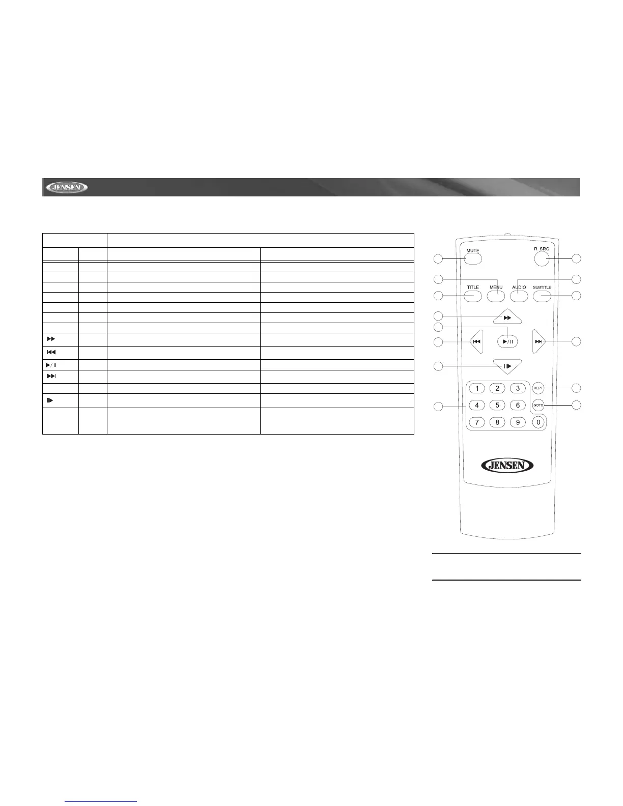 NOTE: Your remote control may differ slightly